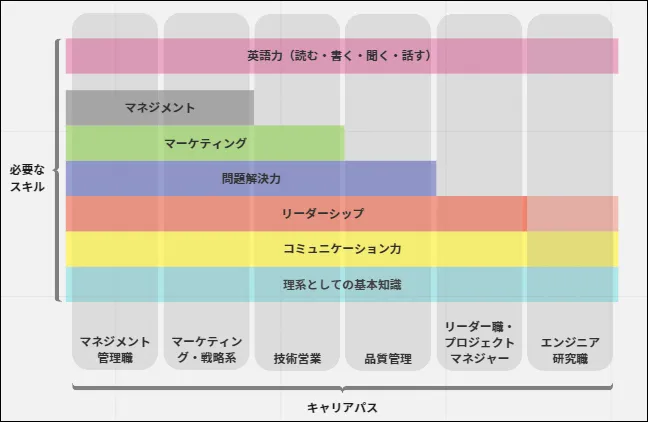 「理系+αで広げる・広がるキャリア」では1回目は英語、2回目はコミュニケーション、3回目は理系リーダーのコミュニケーション、4回目は問題解決力を取り上げました。今回は「マーケティングスキル」を取り上げます。マーケティングは、以下の図の通り、将来管理職になったり、よりビジネスに近い職種に就いたりする場合、重要なスキルとなります。今回も理系・製品開発職、技術職の方の目線から、マーケティングスキルについて説明したいと思います。