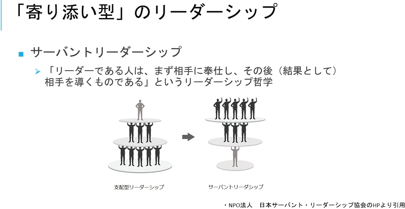 新時代に有効な一つの例:サーバントリーダーシップ(奉仕型リーダーシップ)