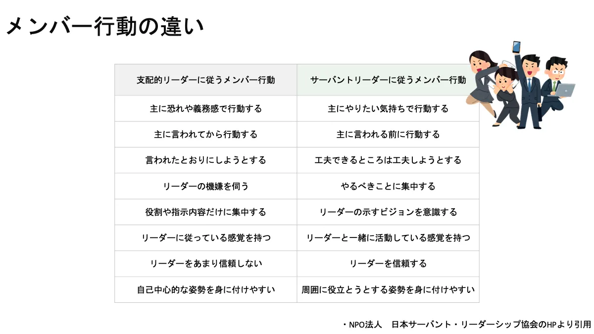 参考までに、サーバントリーダーシップで発揮されるメンバー行動を紹介しましょう。